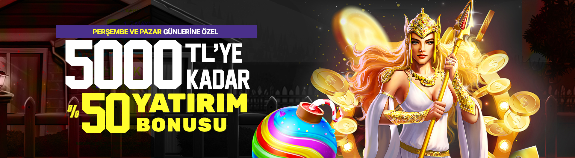 ★ Bonus yalnızca perşembe ve pazar günleri ve en az 100 TL tutarında yapılan yatırımlar için geçerlidir. Yatırılan tutarın %50'si ve en fazla 5.000 TL'ye kadar bonus talep edilebilir.
